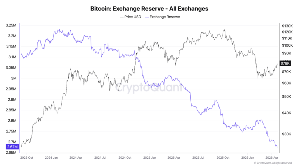| Exchange Reserves | 2.21m BTC (7-yr low) | Structurally bullish |